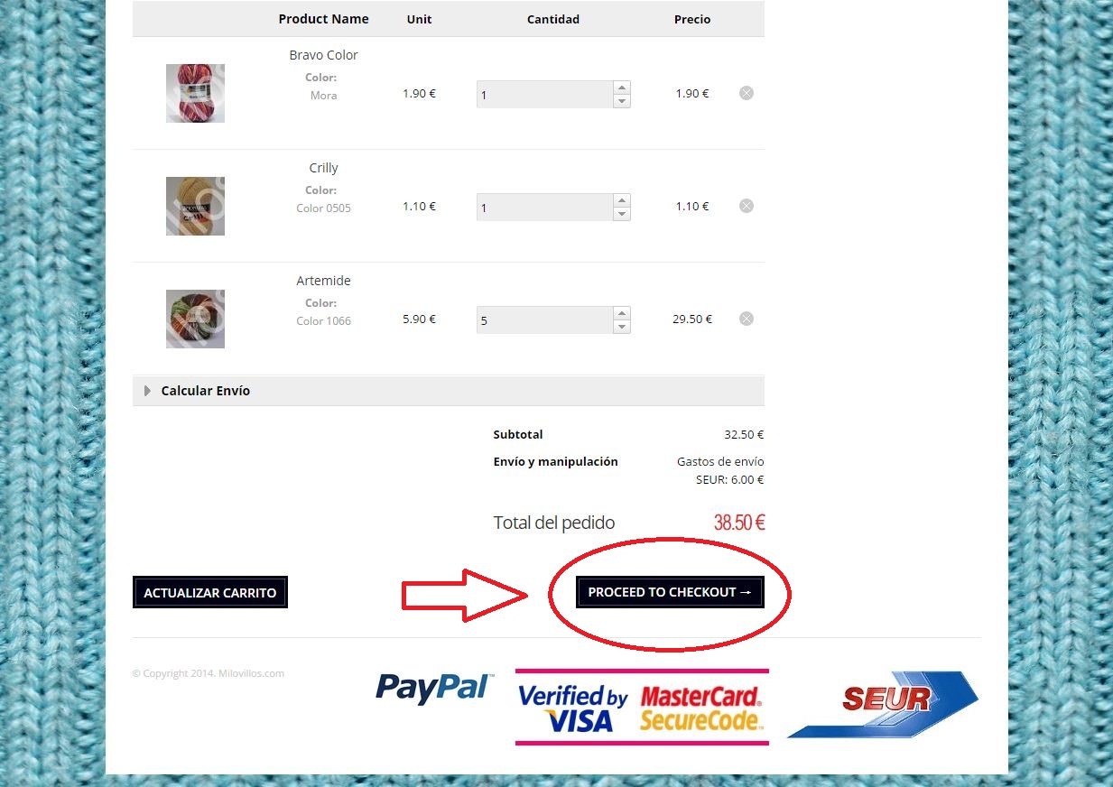 a finalizar el pedido, pulsando el recuadro negro con el texto PROCEED TO CHECKOUT.